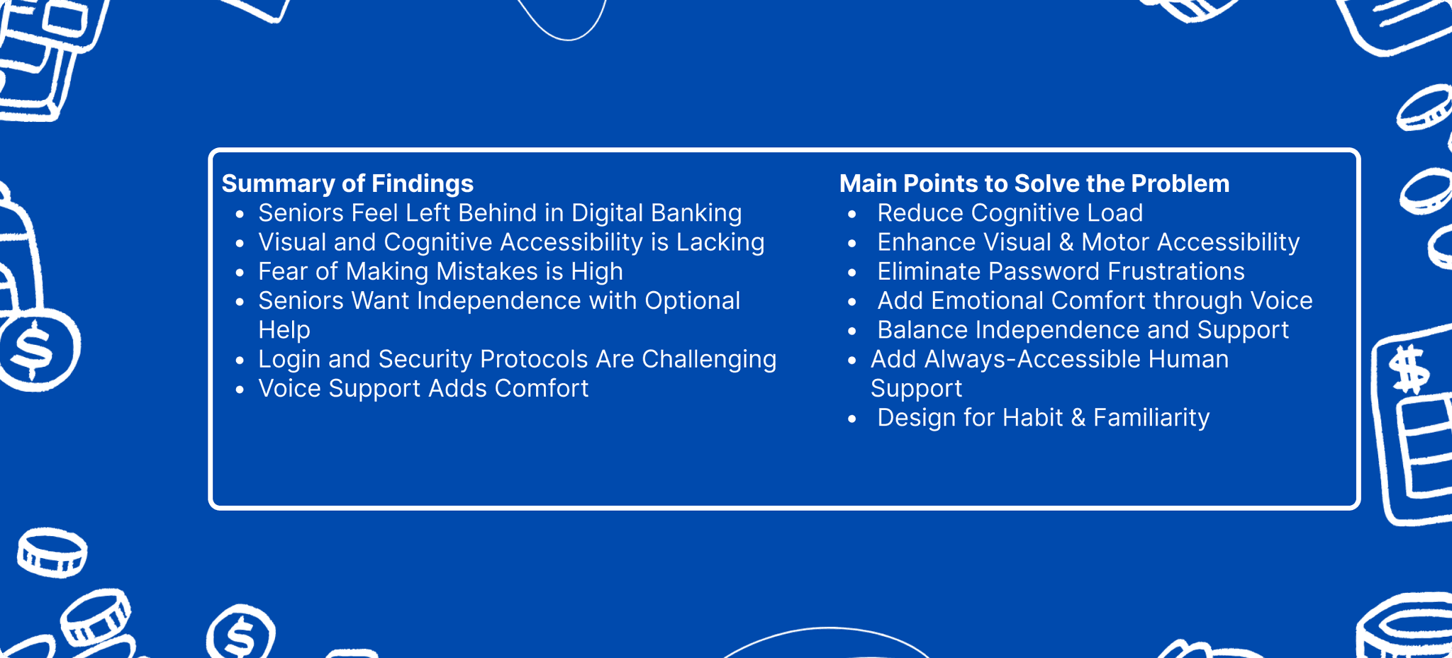 Root Cause: Financial institutions often overlook the need for targeted training and support for older users, assuming they will seek help from family or friends instead.