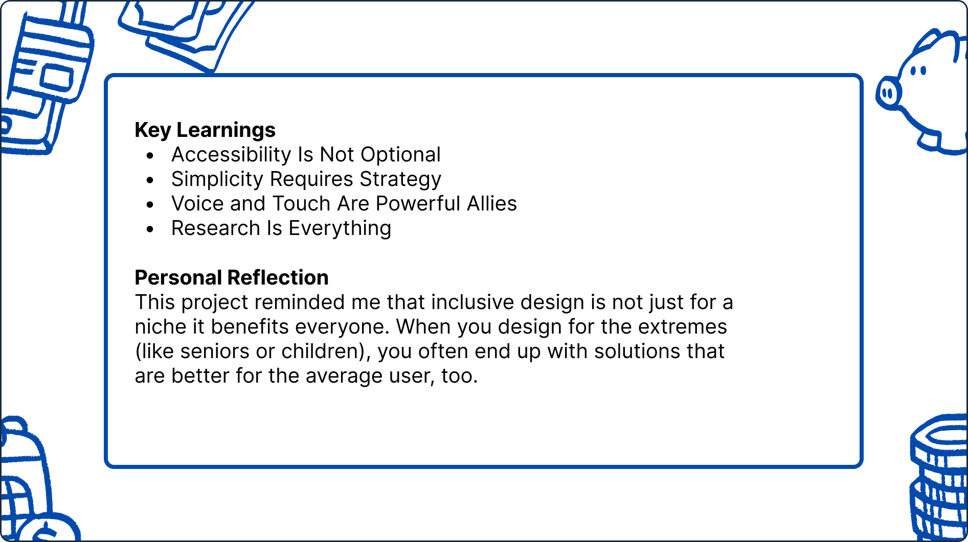 Customer Retention and Satisfaction: Banks must ensure they are meeting the needs of older adults to maintain their loyalty. Failure to provide a user-friendly digital experience may push seniors to either revert to costly in-branch services or switch to competitors who offer more inclusive digital solutions.