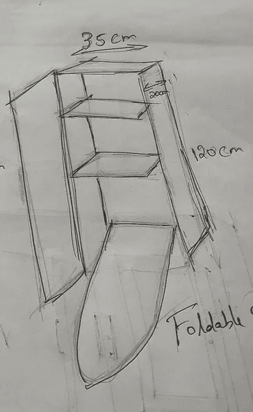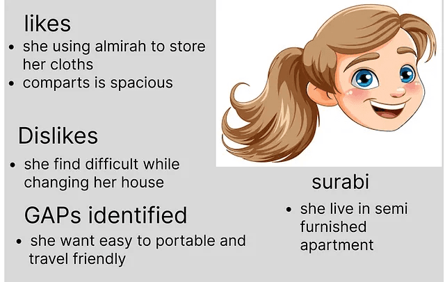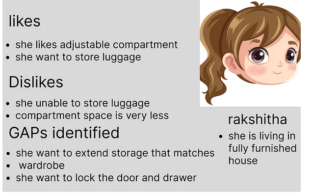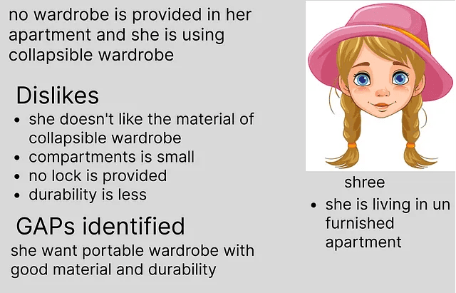 “Let us look at the core problem because of which I designed a portable closet with a dressing table and an iron table attached”.